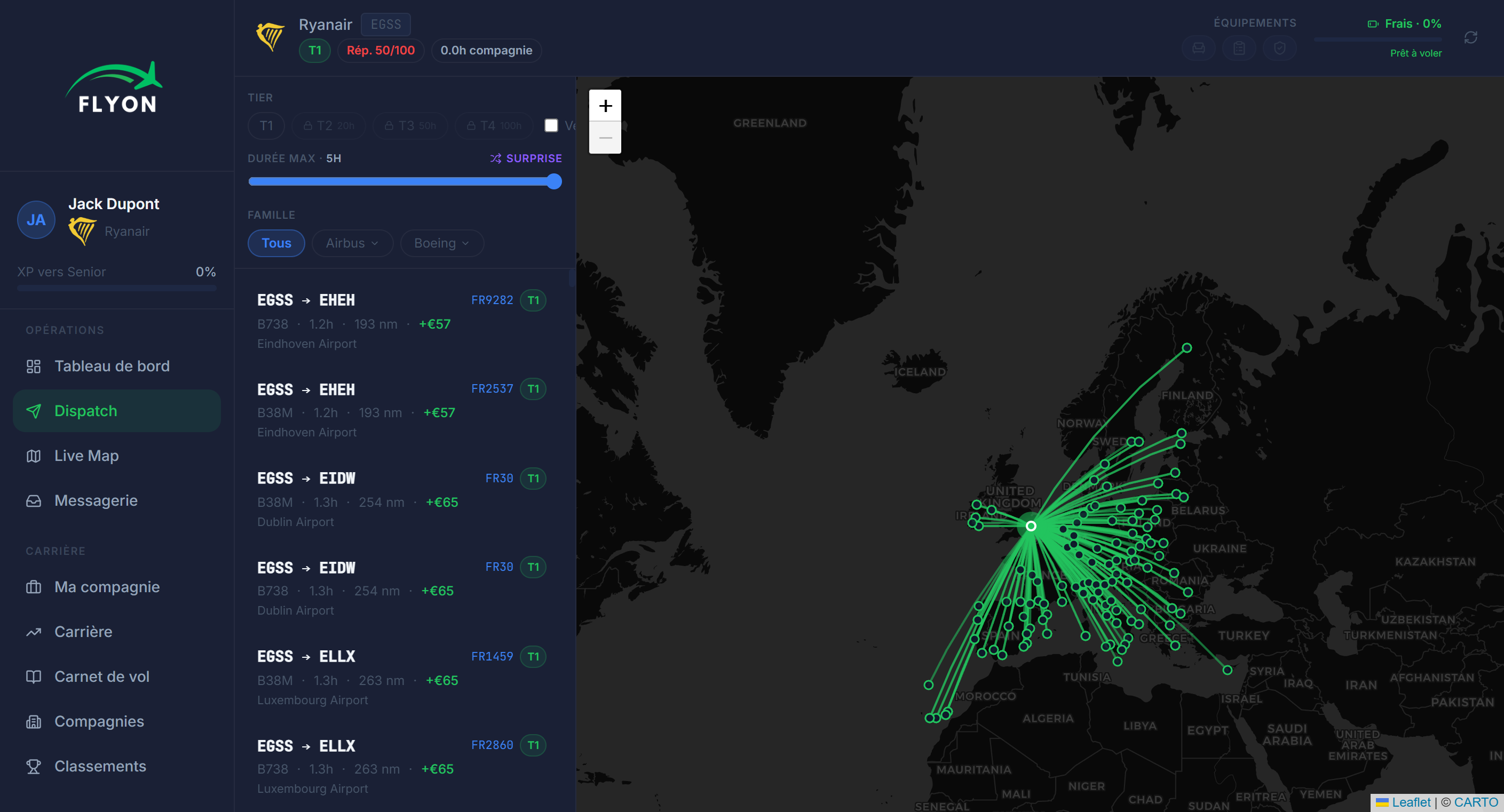 Rejoignez des compagnies aériennes réelles, effectuez des missions, gagnez en réputation et progressez dans une structure de carrière complète avec emplois, grades et opportunités de recrutement.
